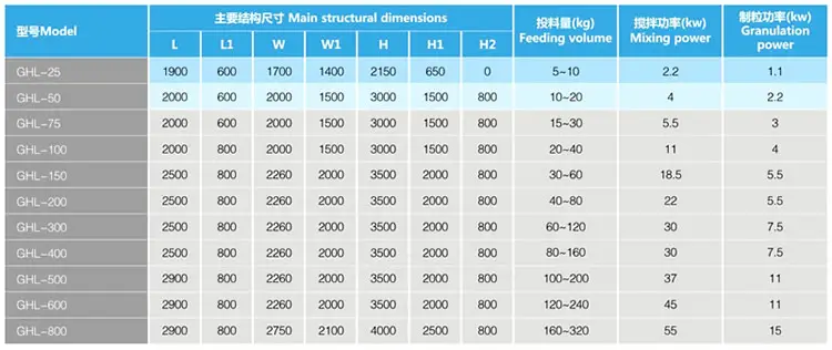 粉状物料在容器中由于混合桨的搅拌作用,呈半流动状态并充分混合,然后注入粘合剂(中成药流浸膏等流体)使之成为湿润软材,经整粒桨(制粒刀)切割成为均匀的湿颗粒。特点