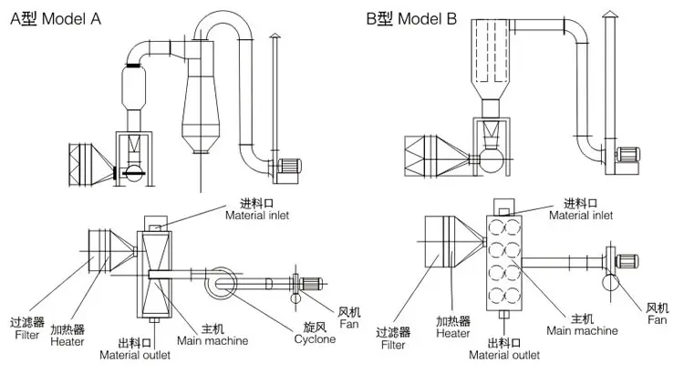 注:一、加料方式有:星形加料。星形加料式和气流输送并用。皮带输送。用户自定。